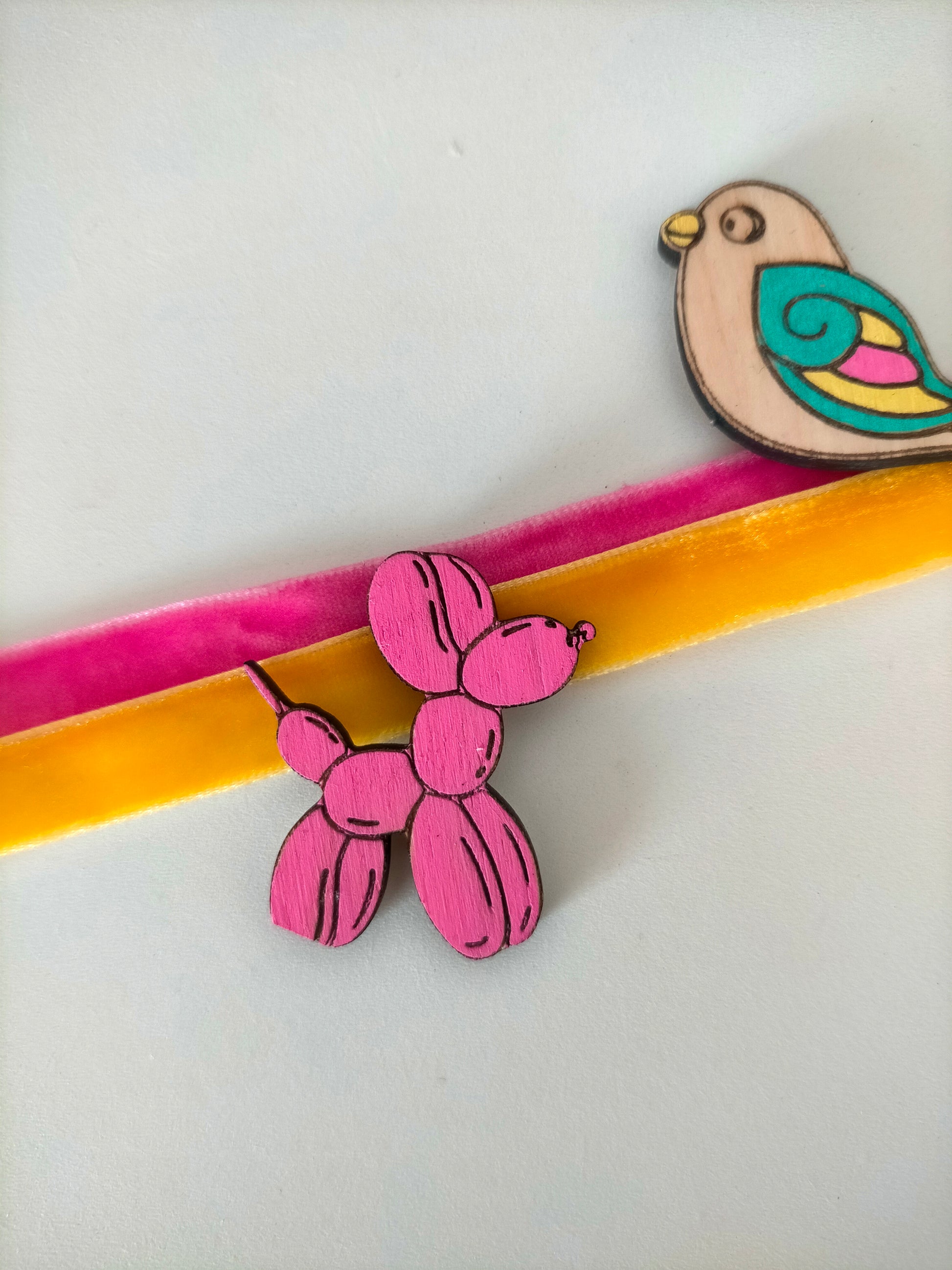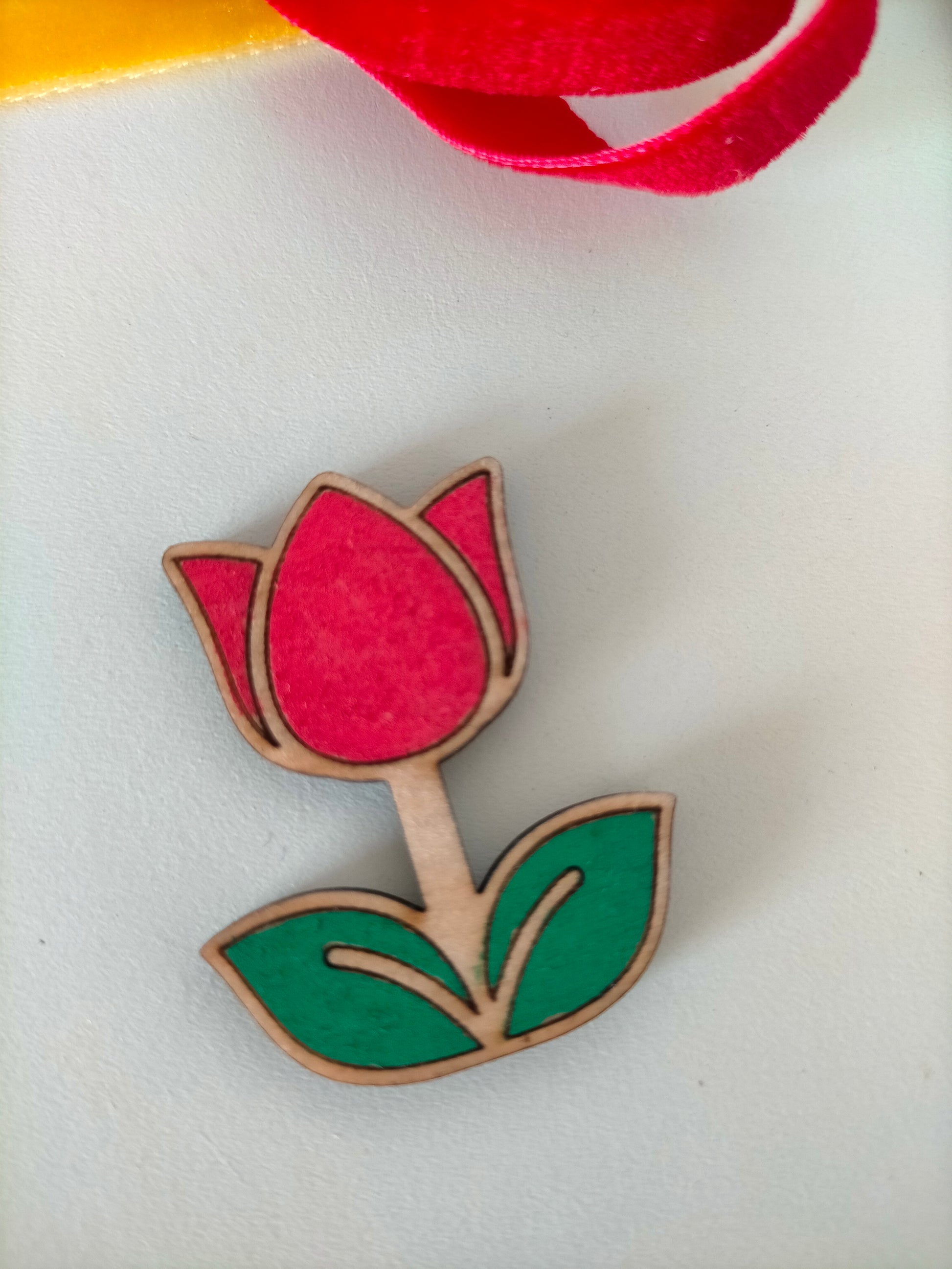 En El Trébol Rosa cada pieza se diseña y fabrica con cuidado en el taller, creando broches de madera únicos que destacan por su estilo artesanal y su encanto.