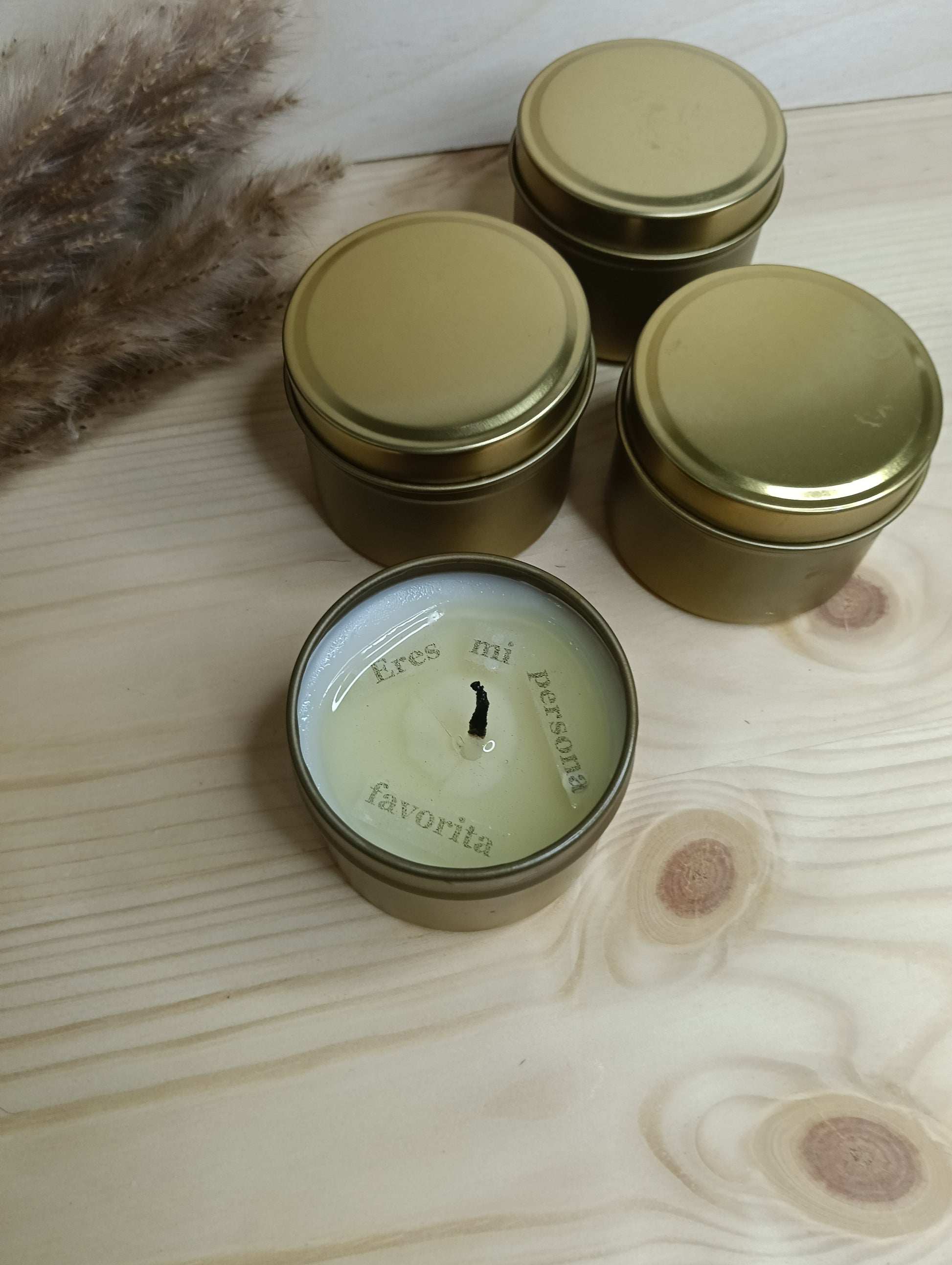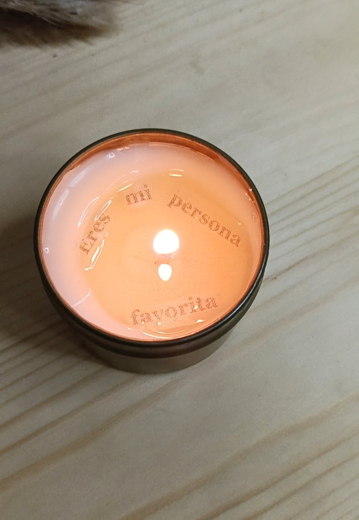 Descubre nuestra vela con mensaje oculto, un detalle original y emotivo que sorprende al encenderse. A simple vista parece una vela elegante de cera suave en un recipiente metálico, pero al derretirse revela un mensaje secreto en su interior, creando una experiencia única y especial.